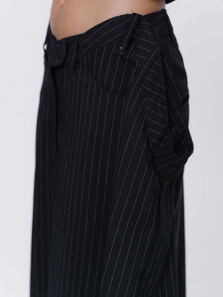 Asymmetric Pinstripe Midi Skirt with Train